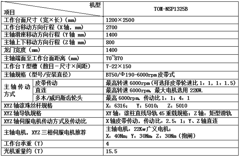 光机技术参数