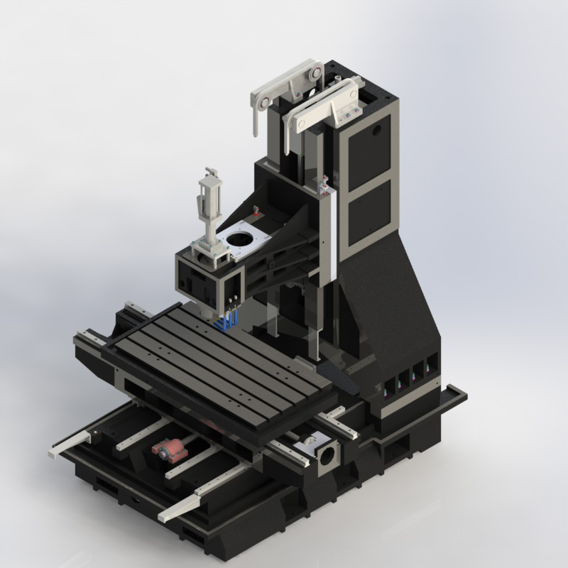 1.光机结构为定柱式,十字滑台结构。机身采用超大稳固底座,高刚性的大跨距人字形立柱,高速切削刚性好不变形。